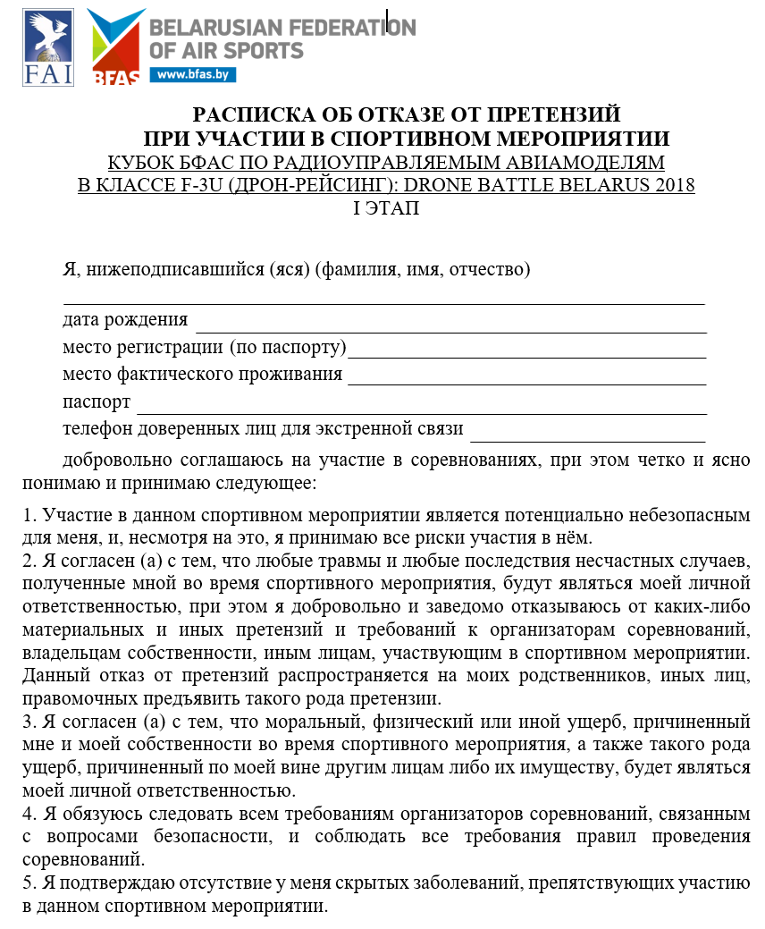 • 18:30 — 19:00 Награждение победителей гонки ПРОНЕБО, 3-го этапа и победителей кубка БФАС Drone Battle Belarus 2018