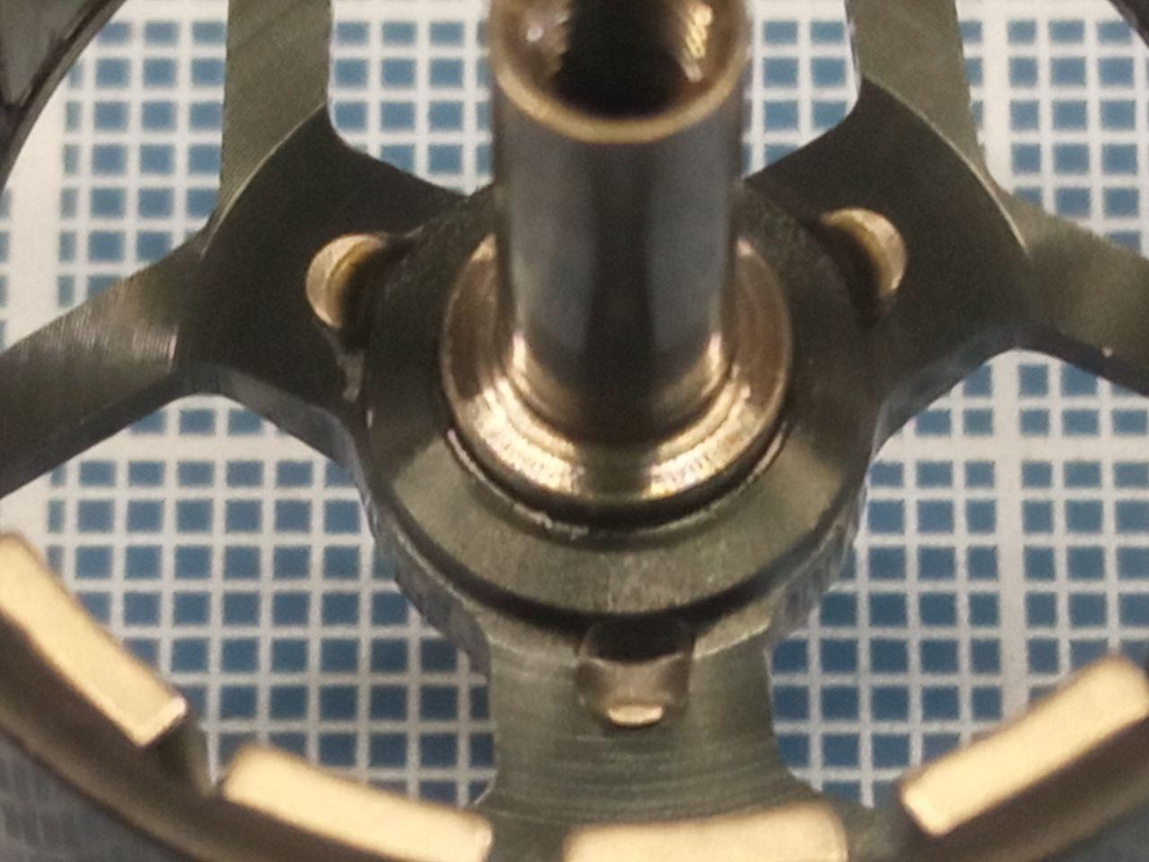 Когда я их видел на фотках, я думал что это такая фрезеровка ротора. Но когда попались в руки, я , мягко говоря, удивился конструктивному решению — запрессованные гвоздики. Алюминиевые. И если на 2207 видно, что из-под шляпок торчит клей (или его подобие). То в 2207.5 похоже просто капнули клея сверху. Ни в одном, ни в другом моторе, следов клея СНАРУЖИ, не заметно. Сколько там клея и на какую глубину, хз от слова вообще.