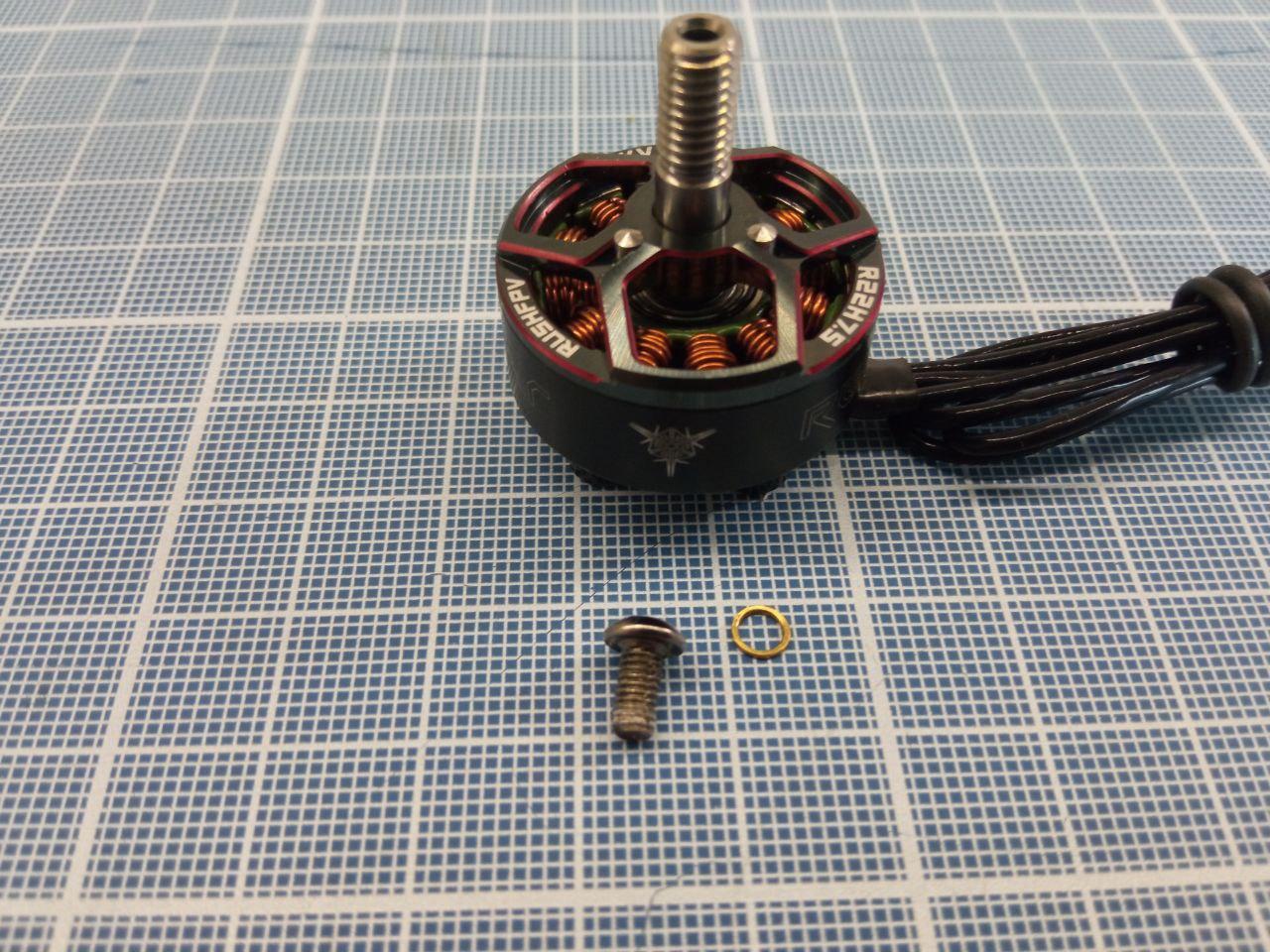 Запасной демпфер с шайбой для ротора. Полноразмерная алюминиевая гайка для пропа. Болты для крепления мотора длиной 8мм, т.е. под 5мм луч. Болты с нанесенным резьбовым герметиком. Мало кто делает такой бонус :-). Болты сталь, без маркировки, скорее всего сталь сырец (но это не точно) и будьте готовы быстренько получить сорваные шлиц под шестигранник.